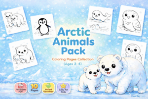 - 🧊 ภาพระบายสีสัตว์ขั้วโลกสำหรับเด็ก (3–6 ปี) –Arctic Animals Pack