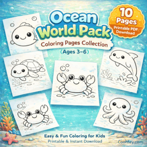 - 🐠 Underwater Creatures Pack – ภาพระบายสีโลกใต้ทะเล สำหรับเด็ก 3–6 ปี (20 ภาพ)