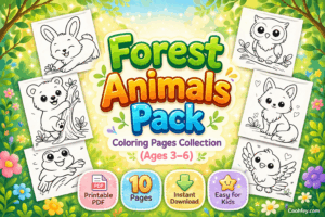 - ภาพระบายสีสำหรับเด็กเล็ก ง่ายและสนุก –Forest Animals Pack – Coloring Pages for Kids (Ages 3–6)