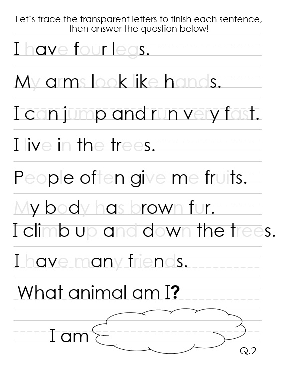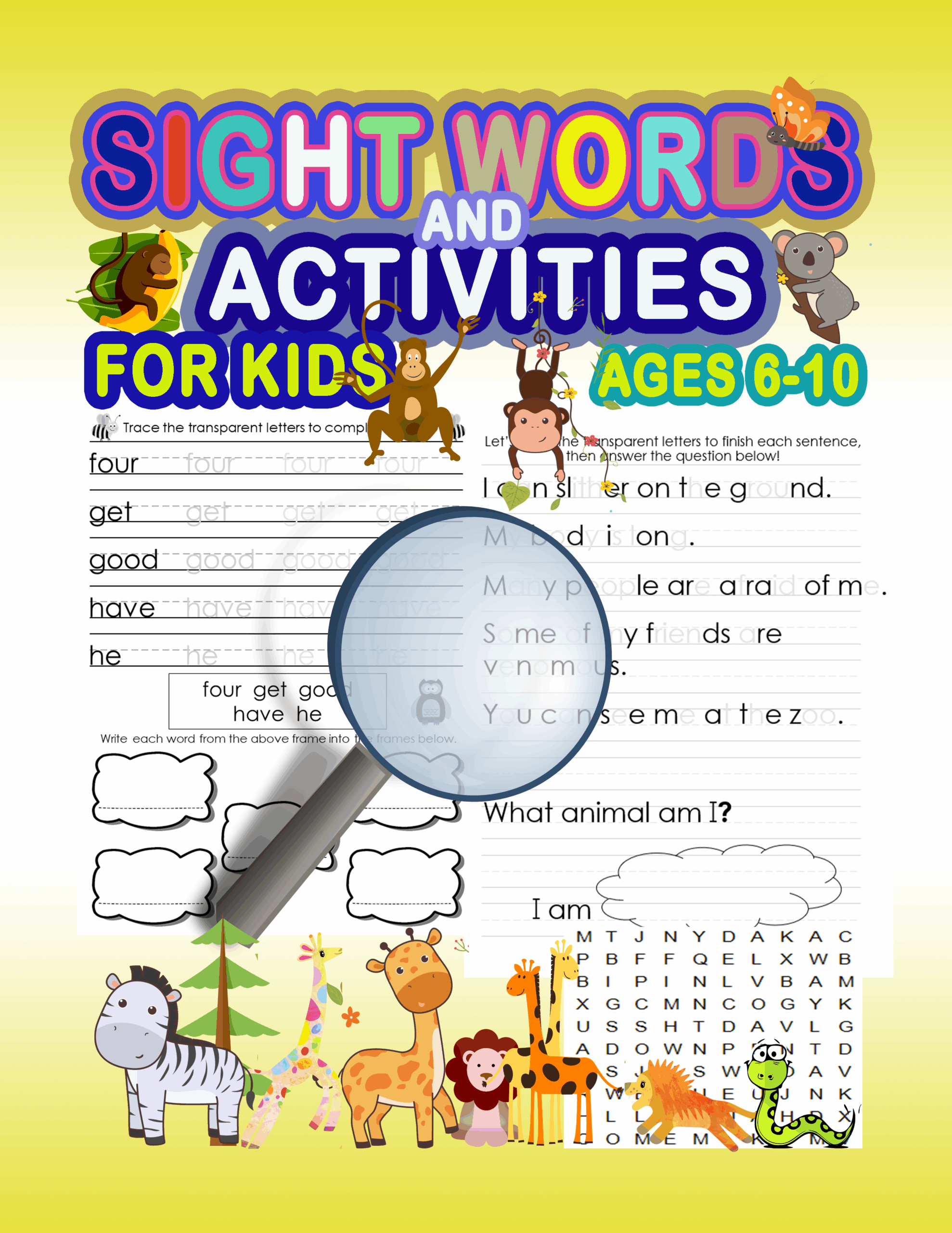 This book will help your children become familiar with high-frequency words. Start by having the children trace the transparent letters to complete words. Let them practice drawing lines to become letters. Then write the words into the shape boxes. Have them fill in to complete the sentences and then answer the questions. This book is a collection of activities for children to enjoy while practicing handwriting.