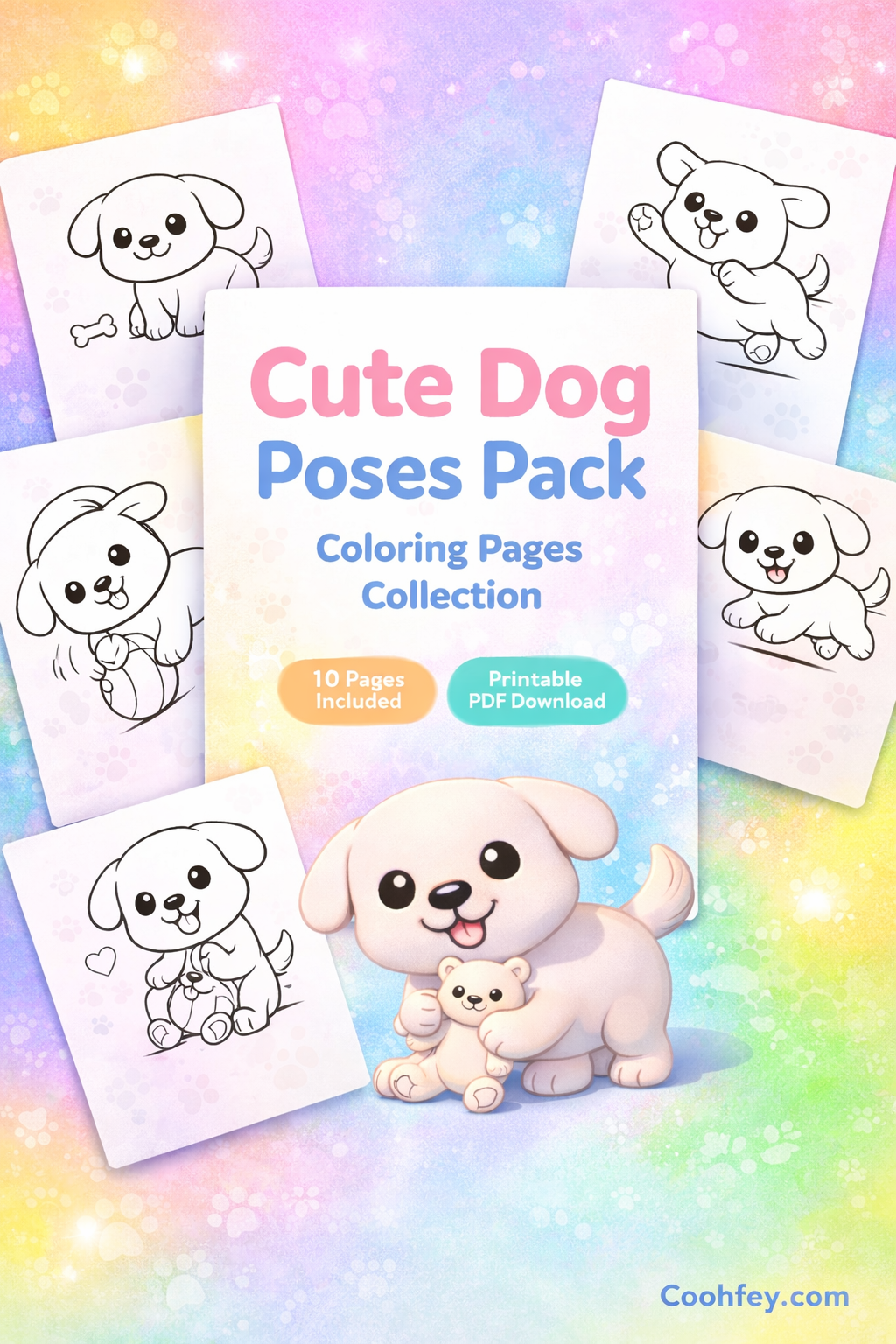 A cute and simple dog-themed coloring pack designed for kids ages 3–6. This is a printable PDF download featuring 10 fun and easy coloring pages with bold outlines and minimal details.