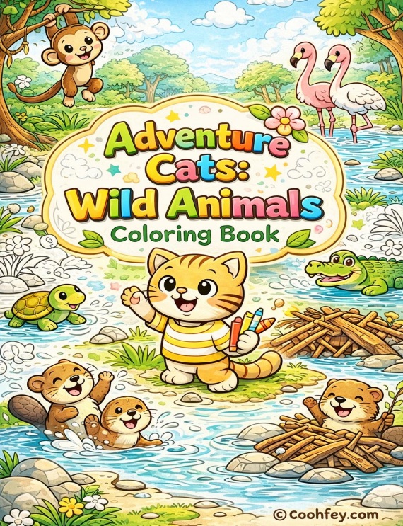 Adventure Cats: Wild Animals Coloring Book
