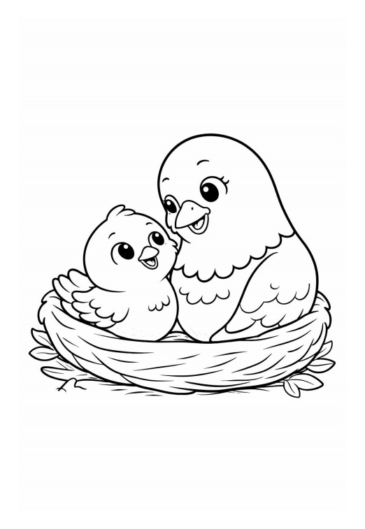This pack includes 10 printable coloring pages (Printable PDF Download) featuring cute and friendly bird scenes such as baby birds, parent birds, and simple nature environments. The illustrations are designed with bold, clean outlines and large open spaces, making them perfect for kids aged 3–6.