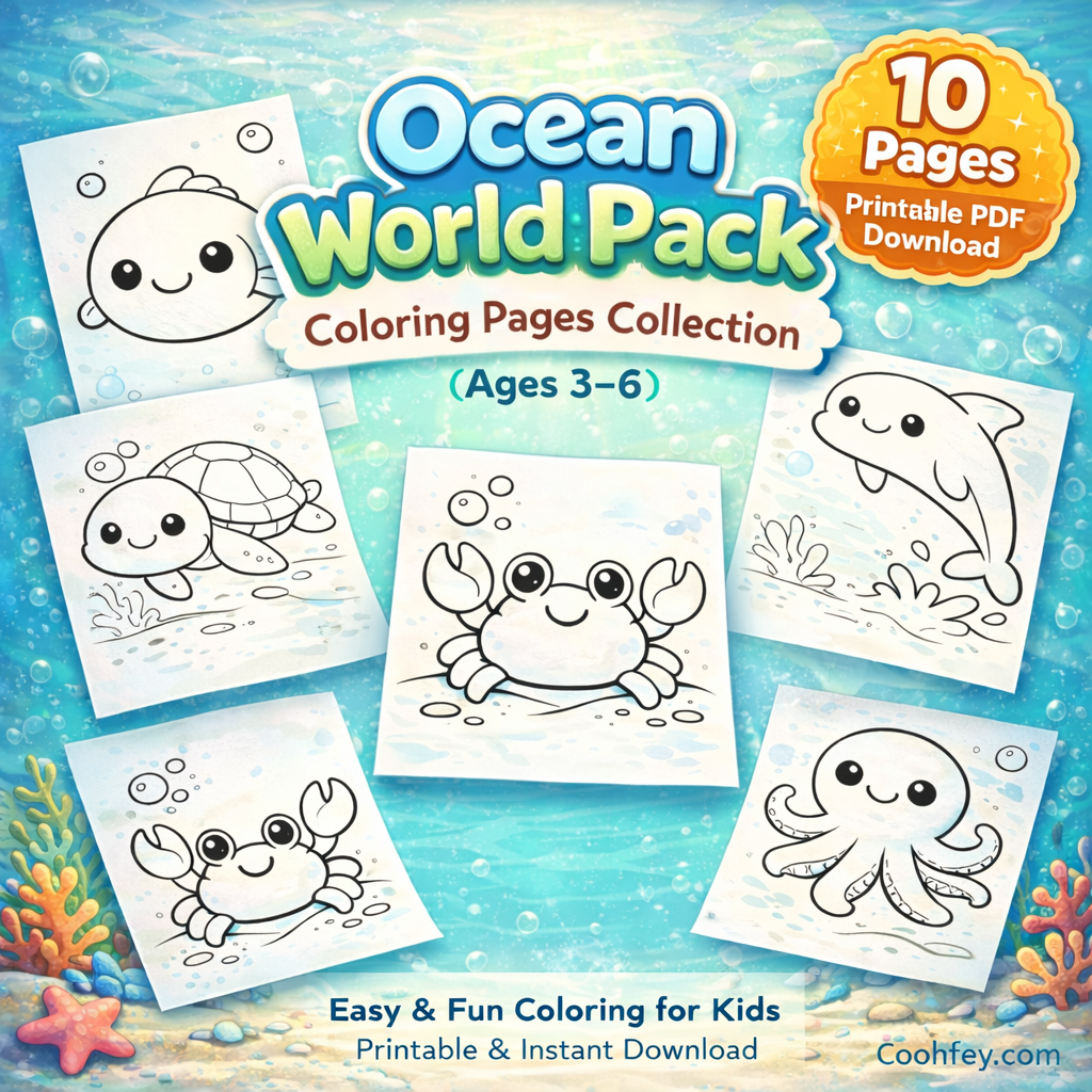 ชุดนี้ประกอบด้วยภาพระบายสีจำนวน 10 ภาพ ในธีมสัตว์ป่า เช่น หมี กระต่าย นกฮูก และสัตว์น่ารักอื่น ๆ โดยออกแบบให้เป็นลายเส้นหนา ชัดเจน และไม่ซับซ้อน เพื่อให้เด็กสามารถระบายสีได้ง่าย